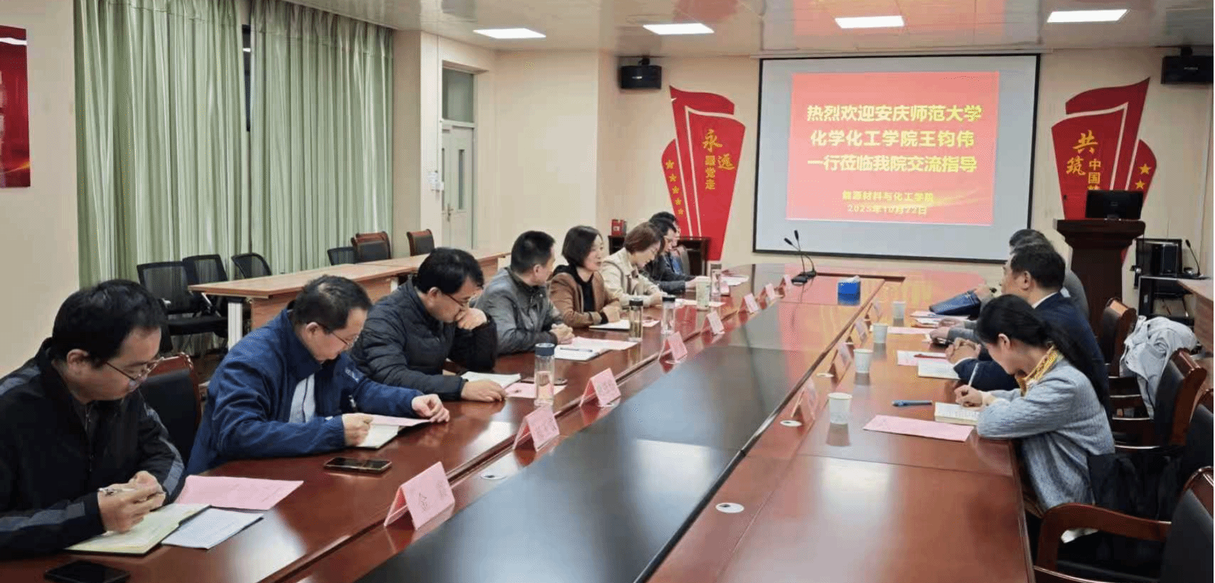 10月22日,化学化工学院院长王钧伟带队院长助理汪玲、张传磊与材料化学教研室主任王来国赴合肥大学开展学科专业建设调研。合肥大学能源材料与化工学院党委书记黄雄英,院长杨伟,副院长胡恩柱、朱三娥及相关专业负责人、骨干教师参加交流会。