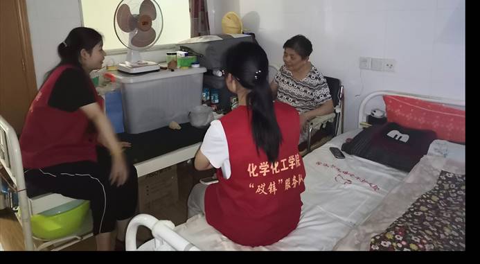 近日,化学化工学院“砹锌”志愿服务队11名队员前往安庆市玉琳护理院,开展“探望老兵 回顾党史”的志愿服务活动。